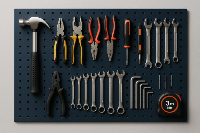 Bảng treo dụng cụ là phụ kiện hỗ trợ sắp xếp, lưu trữ các loại đồ nghề như kìm, búa, tua vít, cờ lê… một cách khoa học và gọn gàng. Với thiết kế bảng nhựa, kim loại kết hợp các móc treo, kệ nhỏ, sản phẩm giúp không gian làm việc trở nên ngăn nắp, dễ quản lý và tăng hiệu quả công việc. Đây là lựa chọn lý tưởng cho gia đình, gara, xưởng cơ khí và nhà máy.