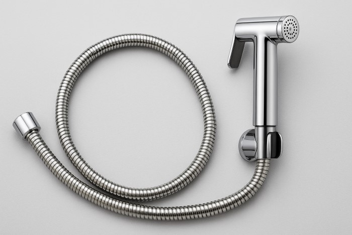 Sản phẩm thường bao gồm tay xịt, dây dẫn nước, đế treo & van chia nước, được sản xuất từ inox 304, đồng thau hoặc nhựa ABS cao cấp, đảm bảo bền, chống gỉ sét và vận hành ổn định.