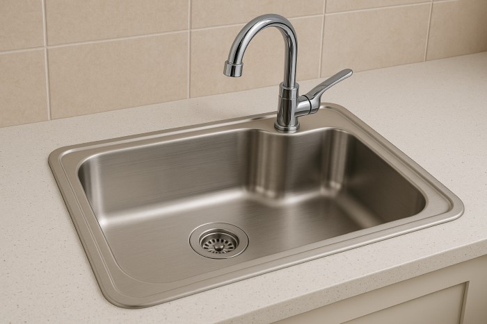 Công trình chung cư, căn hộ : bồn rửa inox sang trọng, tiện nghi.