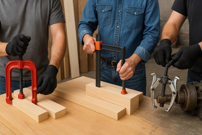 Ngành mộc: kẹp giữ gỗ khi cưa, khoan, dán keo.