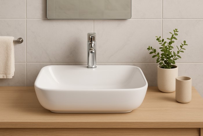 Lavabo đặt bàn dáng vuông / chữ nhật: Mạnh mẽ, hiện đại, phù hợp phong cách tối giản.