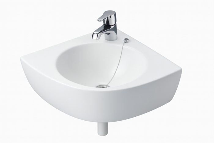 Inax (Nhật Bản): Lavabo góc men Aqua Ceramic, chống ố vàng, thoát nước nhanh, dễ vệ sinh.