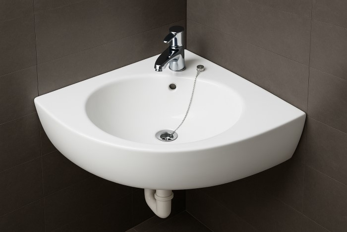 Lavabo góc mini: Kích thước nhỏ (35–45cm), phù hợp WC nhỏ & phòng tắm hẹp.