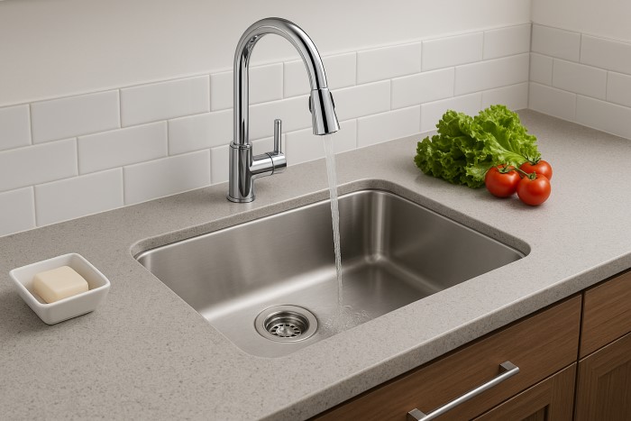 Picenza (Việt Nam): Chậu rửa inox sáng bóng, thoát nước nhanh, dễ lắp đặt.