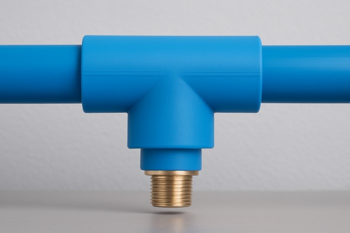 Chữ T ren ngoài màu xanh / trắng: Phân biệt hệ thống nước nóng – lạnh hoặc tiêu chuẩn thi công.