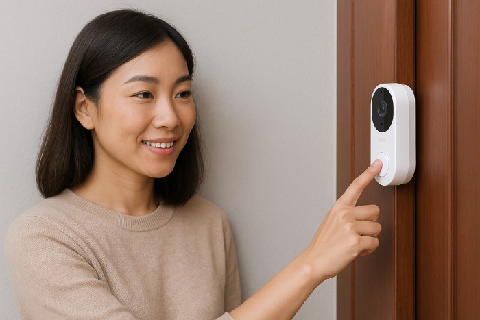 Nhà ở – căn hộ: Chuông cửa báo khách, kết hợp camera giúp chủ nhà nhận biết người ngoài cửa.