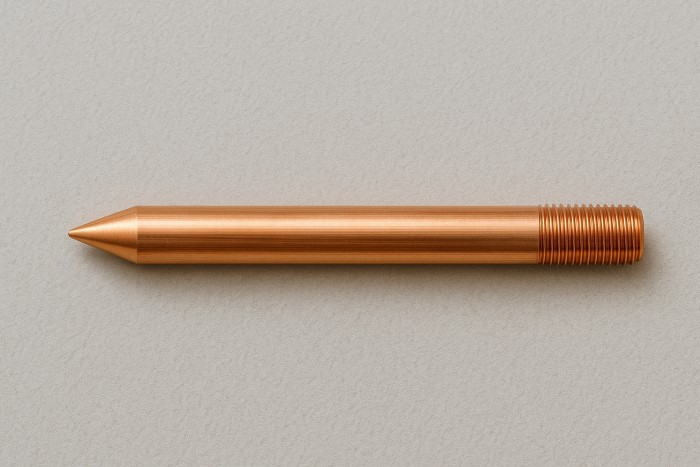Cọc đồng nguyên chất: dẫn điện tốt, tuổi thọ cao, thường dùng trong công trình cao cấp.