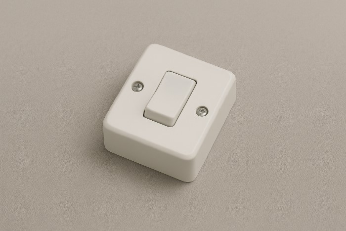 • Công tắc đơn nổi bằng nhựa ABS: Nhẹ, bền, chống cháy, phù hợp dân dụng.