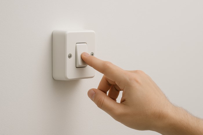 • Khu vực ẩm ướt có mái che: Dùng loại công tắc nổi có nắp chống nước để đảm bảo an toàn.