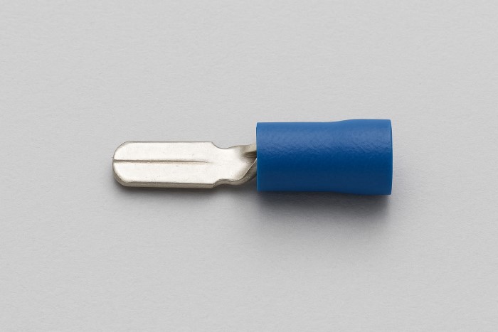 Sản phẩm có phần đầu kim loại dạng ghim thẳng hoặc dẹt, gắn vào vỏ nhựa cách điện (màu đỏ, xanh, vàng) giúp đảm bảo an toàn và phân biệt kích thước dây.
