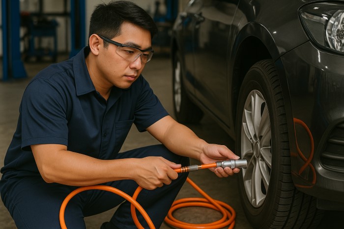 Xưởng cơ khí – gara: Dẫn khí cho súng bắn ốc, bơm lốp, xịt bụi, phun sơn.