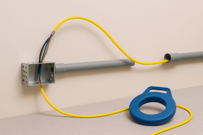 Dây mồi luồn dây điện là dụng cụ chuyên dùng trong thi công điện, giúp kéo dây điện hoặc dây cáp tín hiệu qua ống luồn, máng điện, hộp kỹ thuật hoặc tường âm. Với cấu tạo từ thép lò xo, sợi thủy tinh (FRP) hoặc nhựa PE đàn hồi cao, dây mồi giúp luồn dây dễ dàng, nhanh chóng và không làm hư hại vỏ dây, đặc biệt hiệu quả khi đường ống dài hoặc có nhiều khúc cua.