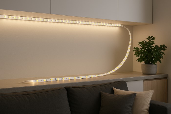 Gia đình, nội thất: dùng LED 5050 12V ánh sáng vàng/trắng để trang trí trần, tủ, cầu thang.