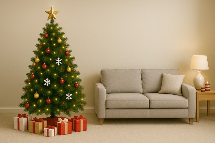 Trang trí lễ hội: chọn cây thông Noel kích thước phù hợp không gian.