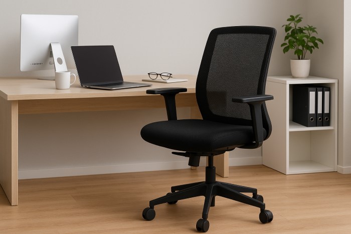 Home Office: Ghế nhỏ gọn, lưng lưới, dễ điều chỉnh chiều cao.
