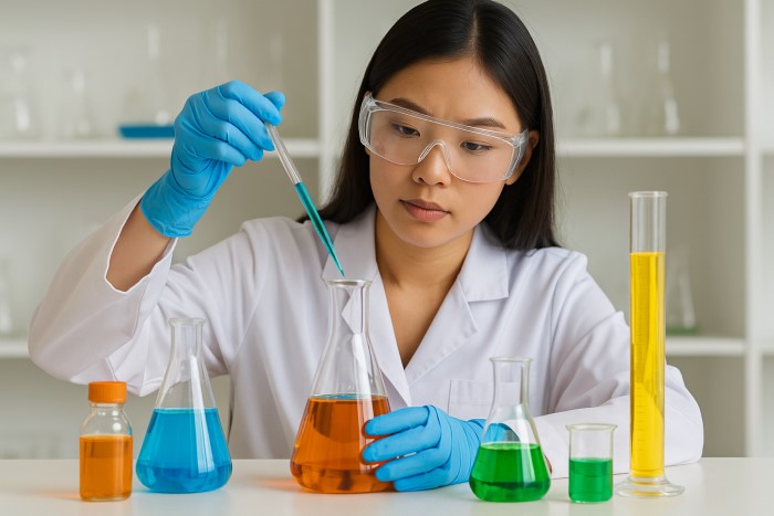 Lĩnh vực sản xuất công nghiệp : Sử dụng hóa chất thí nghiệm để phát triển và kiểm tra sản phẩm.