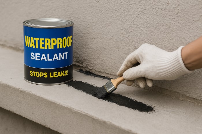 Dùng keo chống thấm trong suốt cho khu vực yêu cầu tính thẩm mỹ.