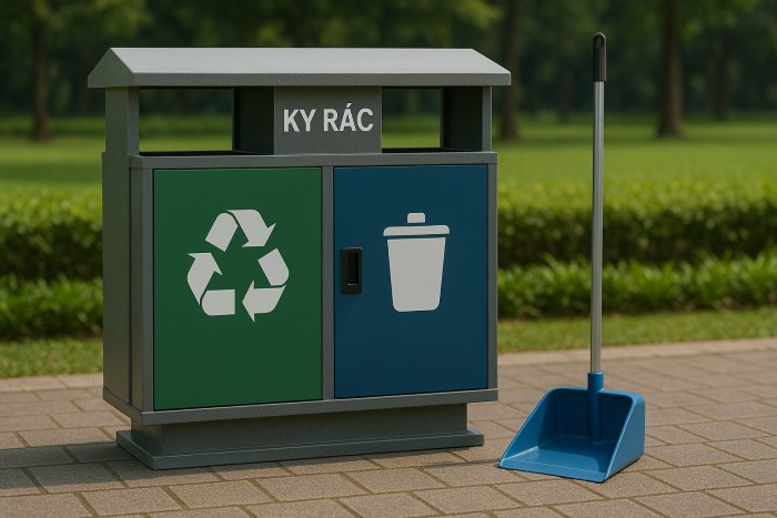 Khu công nghiệp – nhà xưởng: Ky rác lớn bằng inox hoặc sắt tôn, bền, chịu lực tốt.