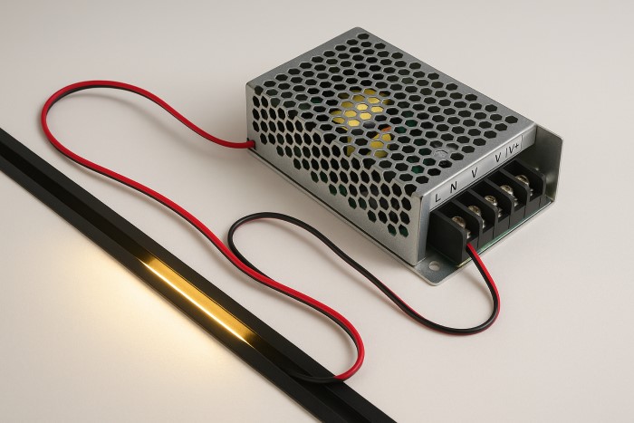 Showroom, LED ray nam châm: nên dùng nguồn 24V để ổn định.