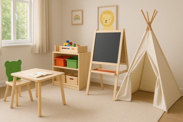 Ưu tiên chất liệu an toàn như gỗ tự nhiên hoặc gỗ công nghiệp đạt chuẩn.
