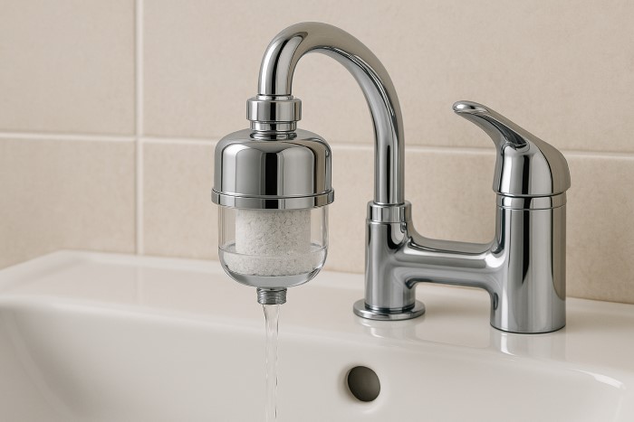 Đầu lọc nước: gắn vào vòi, sen tắm hoặc lavabo để lọc cặn bẩn, kim loại nặng, giúp nước sạch hơn.