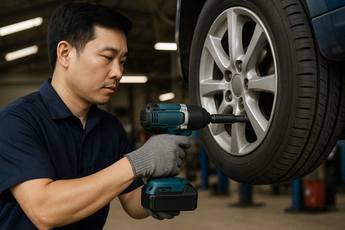 Gara ô tô – xe máy: ưu tiên súng vặn ốc khí nén hoặc máy pin công suất cao.