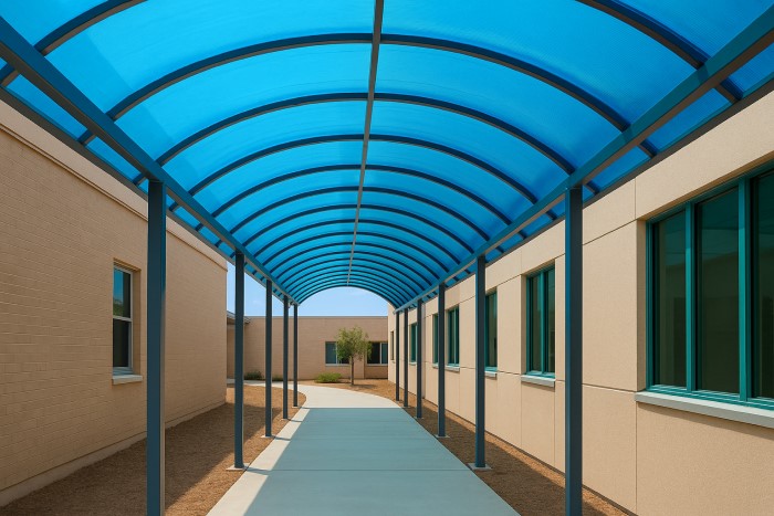 Nhà xe, nhà chờ, hành lang: Dễ lắp đặt, bền đẹp, giữ không gian sáng thoáng.