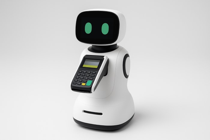 Robot thanh toán cố định (kiosk): Đặt tại quầy – tích hợp POS, màn hình cảm ứng & máy in hóa đơn.