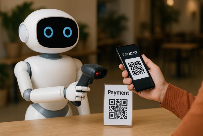 Cửa hàng / nhà hàng nhỏ: Dùng robot thanh toán QR mini, kết nối POS di động.