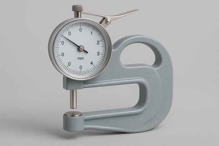 Thiết bị đo cơ học (Mechanical Thickness Gauge): Dạng kẹp cơ, hiển thị đồng hồ kim – độ chính xác cao cho vật liệu mỏng.