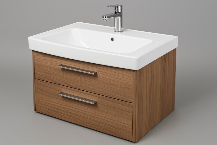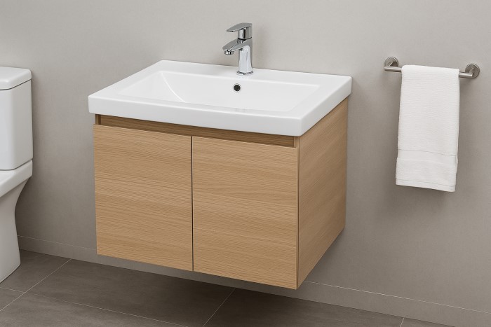 Phòng nhỏ → tủ lavabo treo tường 50–60cm.