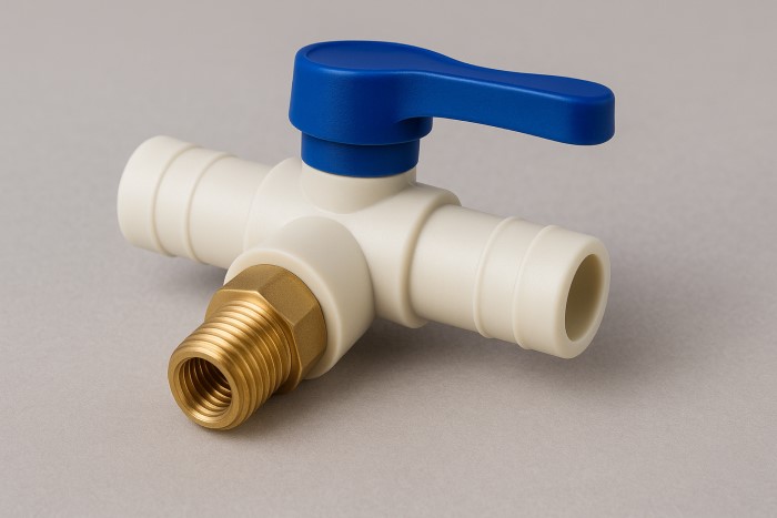 Van chia nước nhựa PVC: Phổ biến nhất, nhẹ, chống ăn mòn, dùng cho nước lạnh.