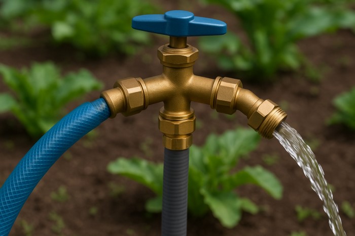 Hệ thống tưới tiêu, chia nước ra nhiều đường ống phun hoặc tưới cây.