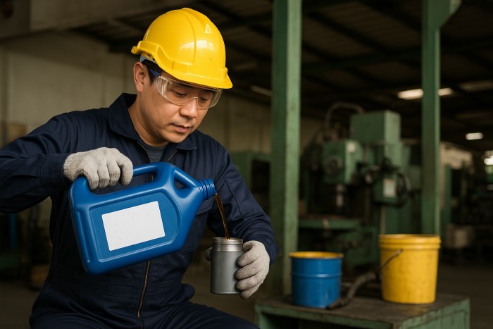 Xưởng cơ khí, sửa chữa: dùng dầu nhớt, hóa chất bôi trơn, giẻ lau.