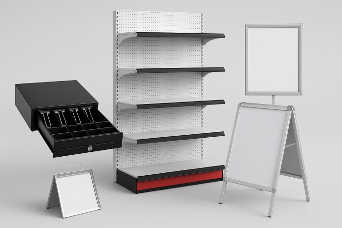 Showroom, cửa hàng bán lẻ: vật tư quảng cáo, phụ kiện trưng bày.