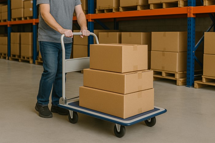 Xe đẩy tay chữ L: Phù hợp vận chuyển thùng carton, vật liệu đóng gói.