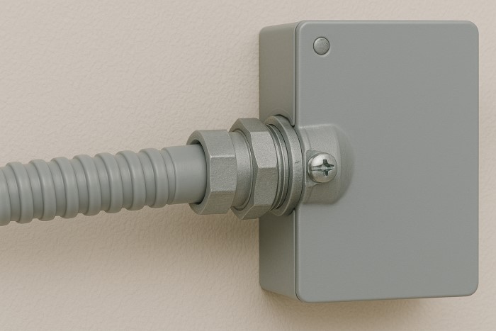 Hệ thống điện dân dụng: kết nối ống ruột gà hoặc ống mềm với tủ điện, hộp nối.