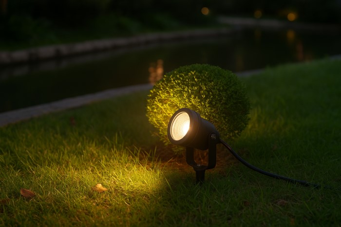 Đèn soi sân vườn: ánh sáng tập trung, làm nổi bật đối tượng.