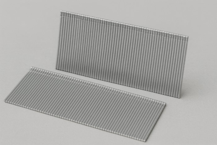 Đinh F có thân thẳng, đầu phẳng nhỏ, chiều dài từ 10 – 50mm, thường được dính thành hàng trong băng đinh, giúp nạp vào máy nhanh, bắn liên tục và đảm bảo độ chính xác cao.