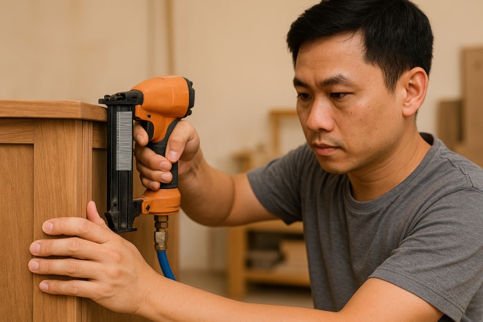 Ngành nội thất & gỗ: Ghim ván MDF, laminate, nẹp, tấm ốp, cửa gỗ, khung bàn ghế.
