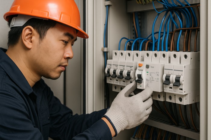 Khu vực ẩm ướt: chọn RCBO chống nước hoặc lắp trong hộp bảo vệ kín.