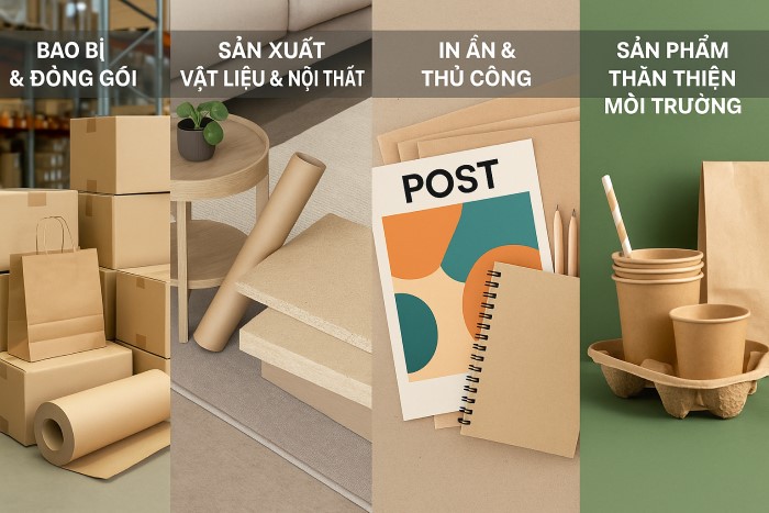 Ngành bao bì – đóng gói: Làm giấy lót, giấy bọc, giấy carton 3–5 lớp, giấy kraft cuộn.