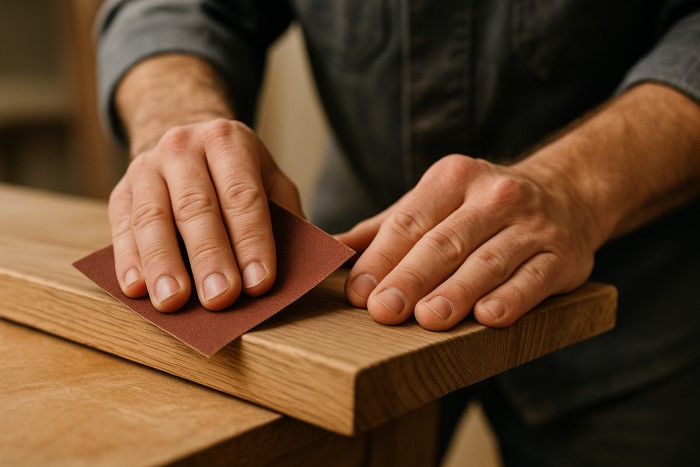 Mài gỗ thô → P60 – P100.