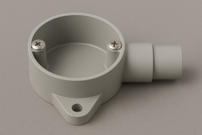 Thi công dân dụng: chọn hộp nối 1 ngã PVC Ø20 – Ø32mm, có nắp đậy.