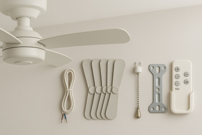 Quạt trần → trục, cánh, hộp số, dây treo.
