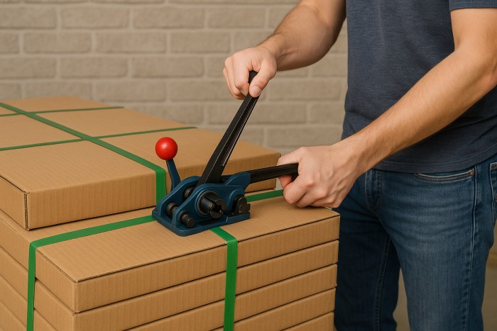 Kìm siết đai (Tensioner): Dụng cụ kéo căng dây đai quanh kiện hàng.