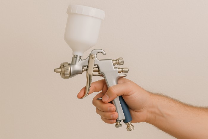 Súng phun sơn mini: Nhỏ gọn, dùng cho sơn chi tiết, mỹ thuật, trang trí hoặc sửa chữa.