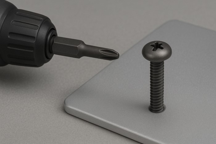 Dùng tua vít phù hợp rãnh (Phillips hoặc Pozi).