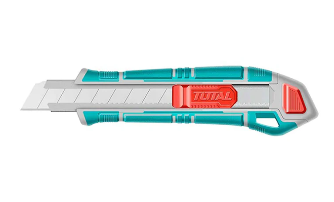 Dao rọc giấy Total THT522136 là dòng dao cắt đa năng sử dụng lưỡi 18mm tiêu chuẩn, phù hợp cho nhiều công việc từ văn phòng đến thi công. Lưỡi dao được làm từ thép SK5 sắc bén, cho khả năng cắt nhanh, gọn và dễ dàng thay thế khi cần. Thân dao thiết kế chắc chắn với lớp nhựa ABS bền bỉ kết hợp cao su chống trượt, giúp cầm nắm thoải mái và an toàn khi sử dụng trong thời gian dài. Cơ chế nút trượt linh hoạt giúp điều chỉnh độ dài lưỡi dễ dàng, đồng thời tăng độ an toàn khi thao tác. Sản phẩm đi kèm 3 lưỡi dao dự phòng, tiện lợi cho người dùng khi cần thay thế nhanh chóng mà không gián đoạn công việc.