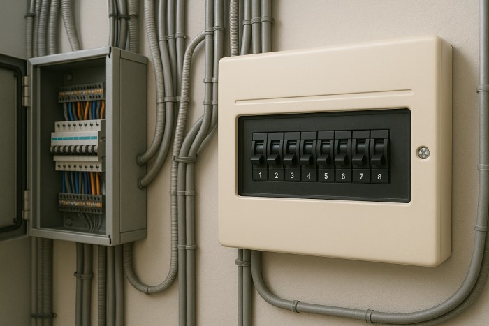 Bảng điện âm tường: lắp chìm, thẩm mỹ cao, phổ biến trong gia đình và văn phòng.